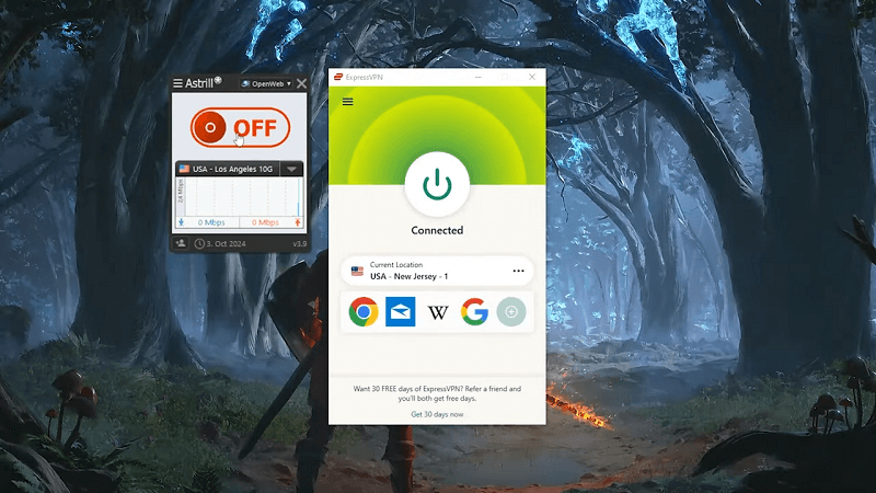 Speed tests are a good way to measure a VPN’s performance. Here are the results for ExpressVPN and Astrill VPN: